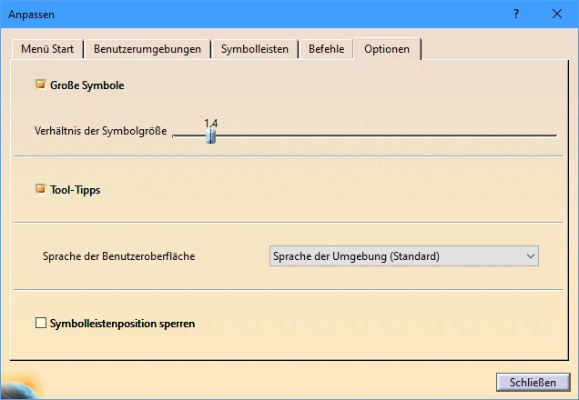 - Aktiviere das Kontrollkästchen "Große Symbole". Diese Option vergrößert allgemein die Symbolleisten-Symbole.